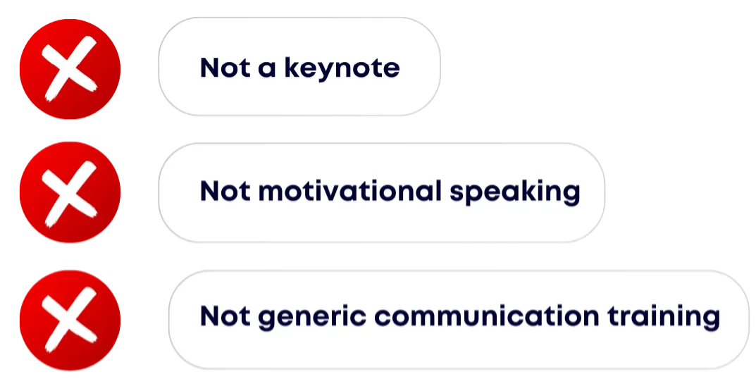 Speakers Institute Corporate allowed me to step out of my comfort zone, and improve my communication, in just 8 hours. The high quality facilitators, great program content and delivery cadence resulted in a thoroughly enjoyable and rewarding course. I now have the tools and frameworks to be the most impressive communicator in the room. Thank you!